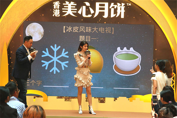 8月23日中午,陈慧琳以香港美心月饼代言人,现身深圳万象天地美心月饼宣传活动,与现场粉丝进行一系列有趣的互动猜字游戏,一起品茗了香港美心月饼最新推出的冰皮月饼系列,包括有红豆冰、冻柠茶、咸柠檬水、正宗马来西亚猫山王榴莲等口味,崭新的冰极观感和滋味,大大有别于传统月饼,又极具香港冰室的传统味道,令这个中秋充满了香港美心月饼带来的“心”意。
